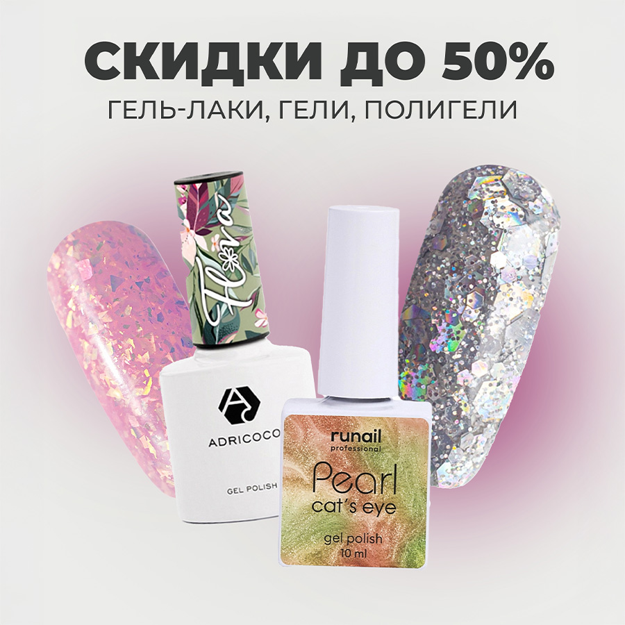 Подборка гель-лаков, базовых и топовых покрытий популярных брендов со скидками до 50%.