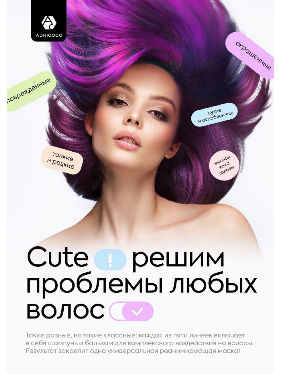Деликатный питательный бальзам, способный сохранить цвет окрашенных волос и наполнить их завораживающим сиянием - это бальзам Adricoco Cute Color Balsam. Попадая на пряди, он превращается с нежнейшую кремовую субстанцию, которая полирует поверхность волосков, запечатывает плотнее чешуйки кутикулы, повышает ее способность к естественному светоотражению, помогает волосам максимально долго не терять сочности и яркости оттенка.