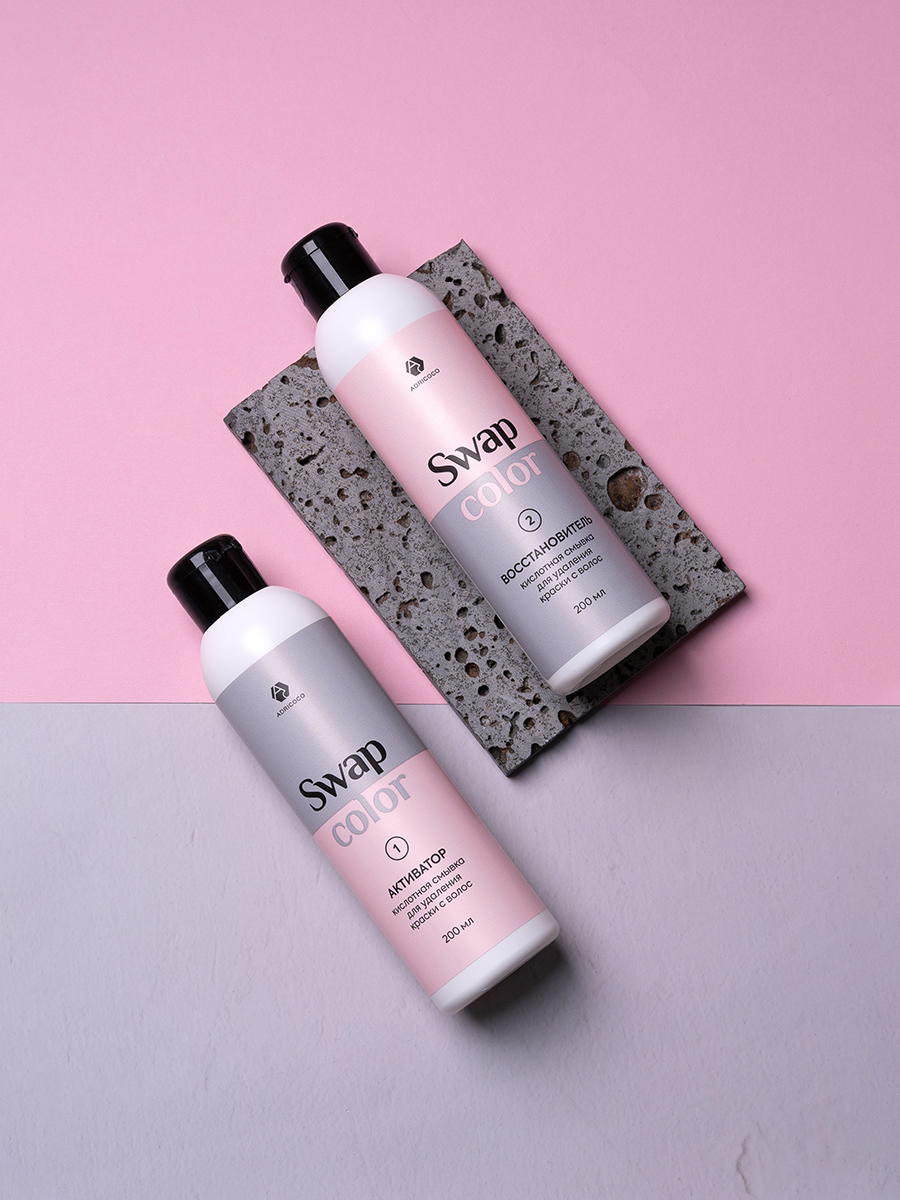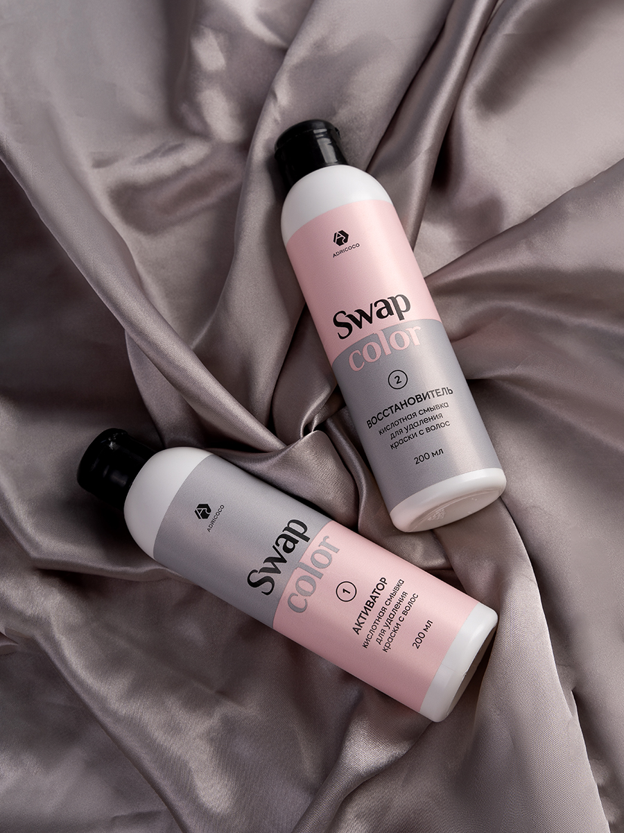 Комплект кислотной смывки для удаления краски с волос Swap Color, ADRICOCO (активатор 200 мл; восстановитель 200 мл)
