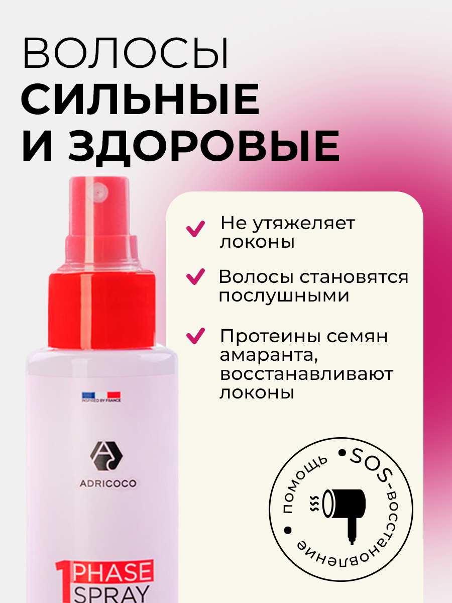 Adricoco, однофазный спрей для легкого расчесывания с протеинами семян амаранта, 250 мл