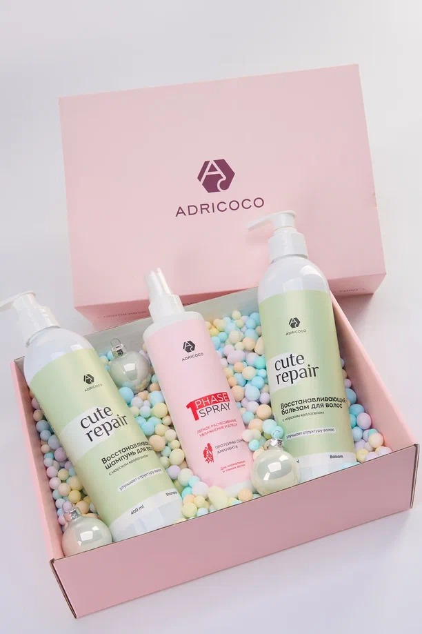 - Восстанавливающий бальзам для волос с морским коллагеном CUTE REPAIR: нанести на влажные подготовленные пряди. Оставить на 2-3 минуты. Смыть. Рекомендуется использовать в паре с шампунем Adricoco Cute Repair.