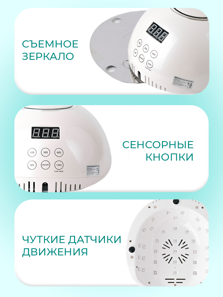 Эта ЛЕД/УФ-лампа сочетает в себе мощность и удобство. Двойной источник излучения uv + led позволяет сушить все типы гель-лаков, включая биогели, за считанные секунды. 36 светодиодов нового поколения расположены так, чтобы обеспечить равномерную сушку всех пяти пальцев. Светодиоды служат до 50 000 часов, сохраняя стабильную яркость и не теряя эффективности. Излучение безопасно для кожи и глаз, что особенно важно при работе с чувствительными клиентами.