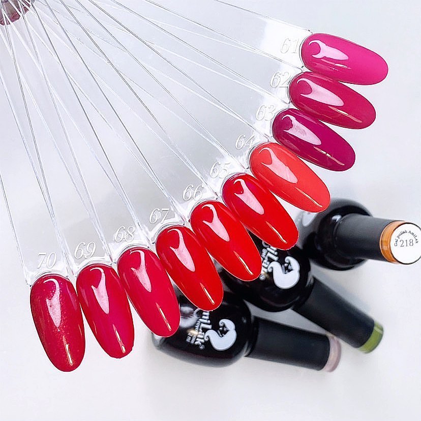Гипоаллергенные гель-лаки Amilak отличаются большим разнообразием палитры. В ассортимент входят классические оттенки для французского маникюра, нежные пастельные тона, а также сочные, осенние пигментированные цвета. И новичок, и профессионал ногтевого сервиса ценят бренд за качественные гель-лаки и огромный выбор оттенков. На крышках Amilak есть колпачки, окрашенные в цвет гель лака, что значительно сокращает процесс поиска цвета. Экономичный объем в 12 миллилитров обеспечит долгое использование. Текстура гель-лаков имеет среднюю густоту, что позволяет выполнить дополнительное выравнивание ногтевой пластины. Материалы не оставляют полос и светлых промежутков, самовыравниваются при нанесении.