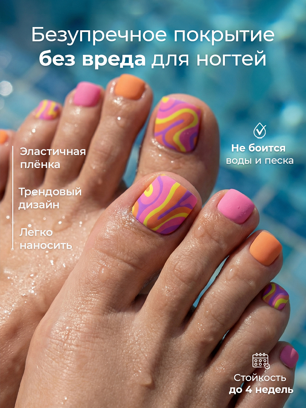 Создавайте безупречный педикюр быстро, легко и без вреда для ногтей. Выбирайте свой дизайн и наслаждайтесь идеальным результатом на протяжении всего месяца.