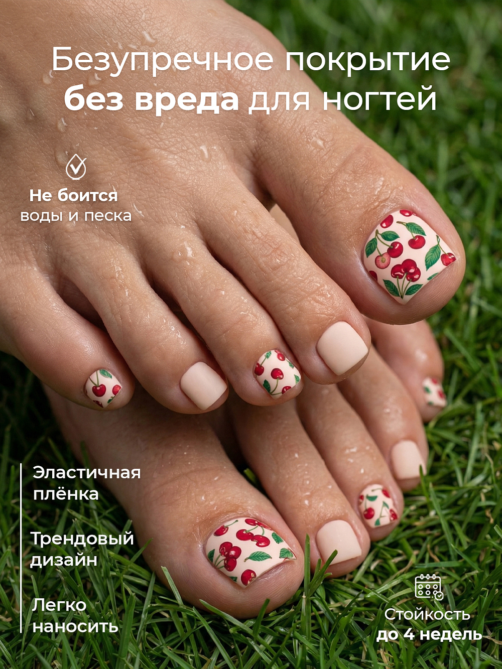 Создавайте безупречный педикюр быстро, легко и без вреда для ногтей. Выбирайте свой дизайн и наслаждайтесь идеальным результатом на протяжении всего месяца.