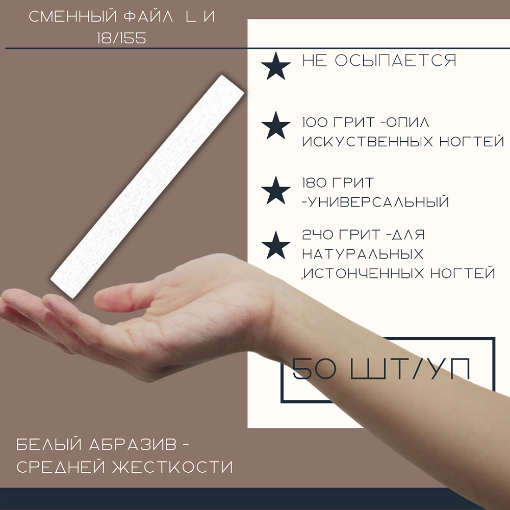 Белые невлагостойкие файлы с абразивом средней жесткости на вспененной основе (1 мм) подходят для приклеивания к основе пилок из хирургической стали. Прочный качественный материал на липкой основе устойчив к воздействию и не осыпается. Файлы изготавливаются из карбида кремния и проходят дезинфекцию и кварцевание перед упаковкой. Фасуются только с помощью специального оборудования, что сохраняет стерильность.