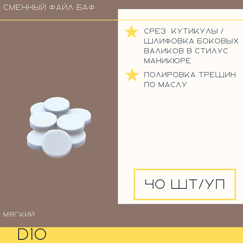 Одноразовые, мягкие файлы-бафы на клеевой основе имеют высококачественный абразив, который не размокает в воде. Используются с педикюрным диском Juvipod D10, который можно подвергать химической и термической стерилизации. Предназначены для среза кутикулы, шлифовки боковых валиков в стилус-маникюре и полировки трещин по маслу.