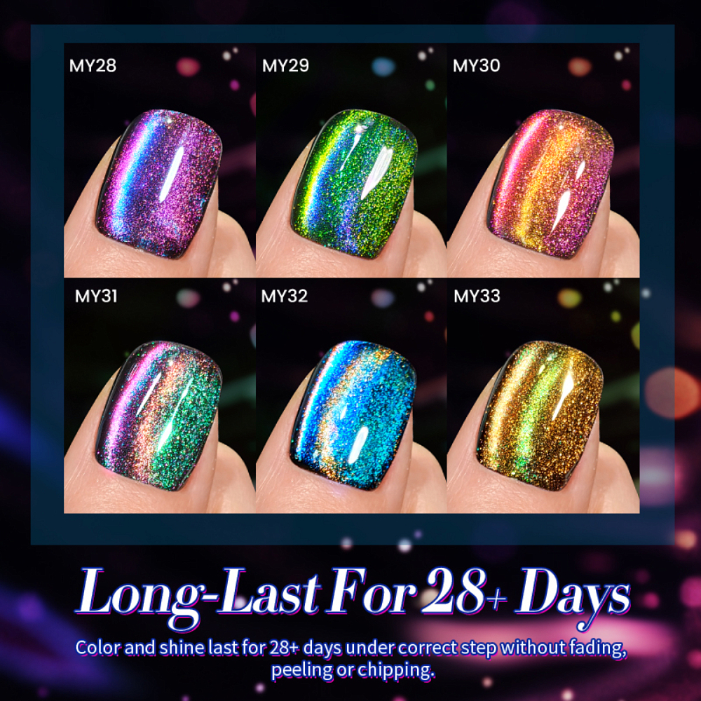 В коллекции гель-лаков 9D Polaris Cat Eye Gel 6 потрясающих оттенков. Каждый цвет уникален.