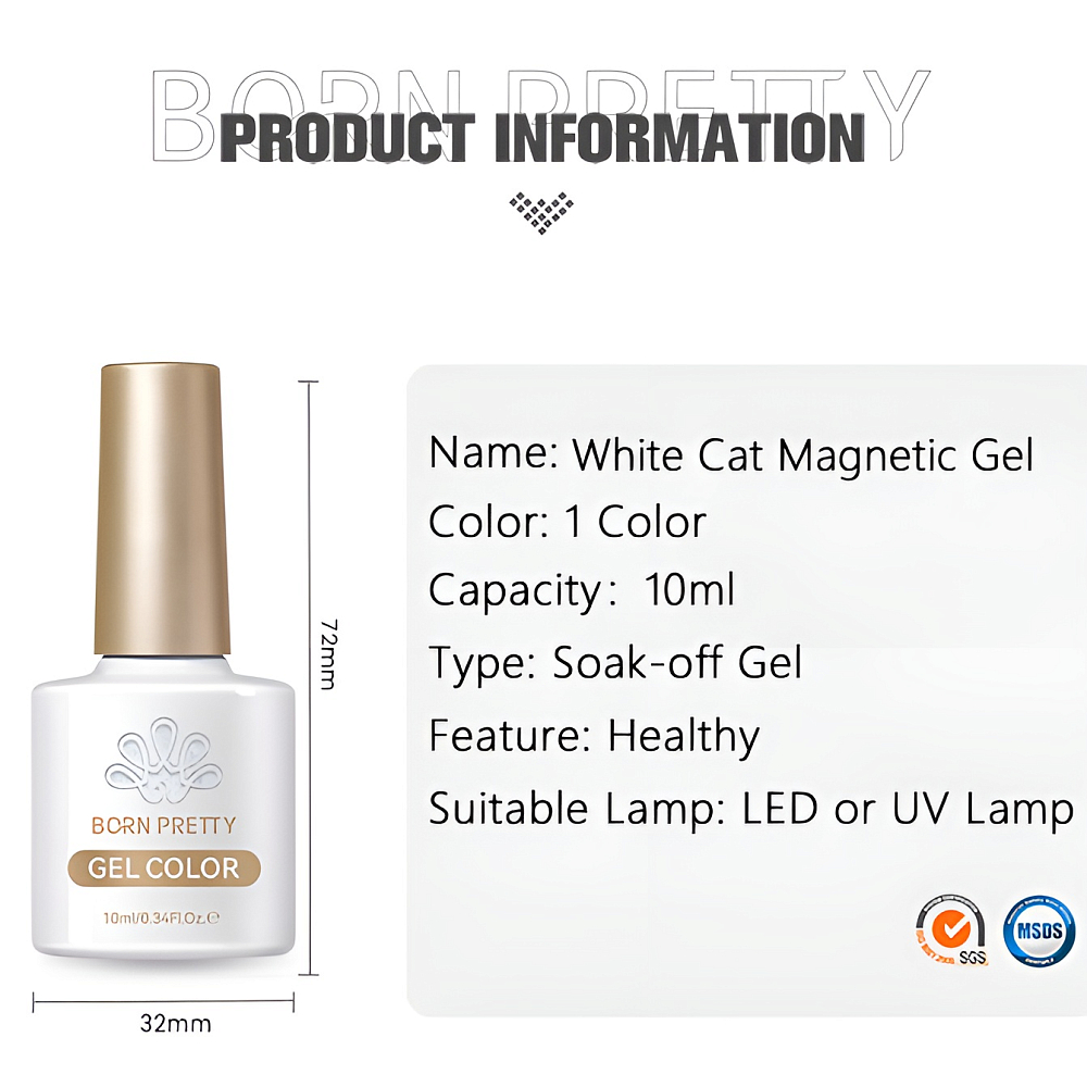 Born Pretty, White Cat Magnetic Gel - магнитный гель-лак "кошачий глаз", 10 мл