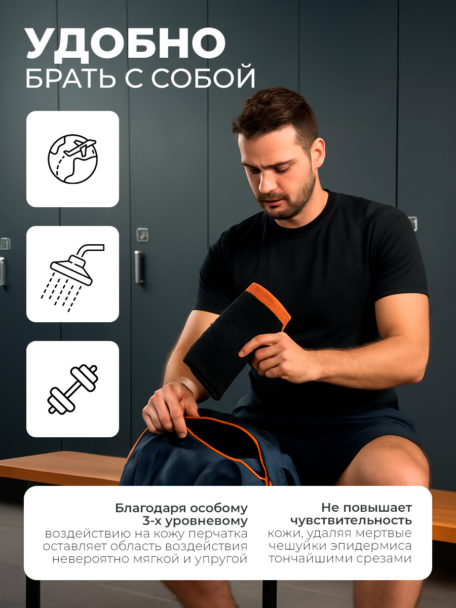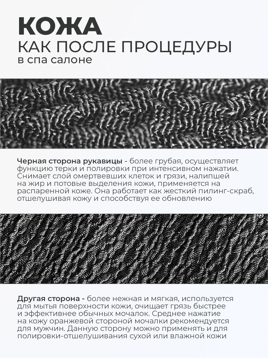 - Благодаря особому 3-х уровневому воздействию на кожу рукавичка оставляет область воздействия невероятно мягкой, гладкой, упругой и бархатистой