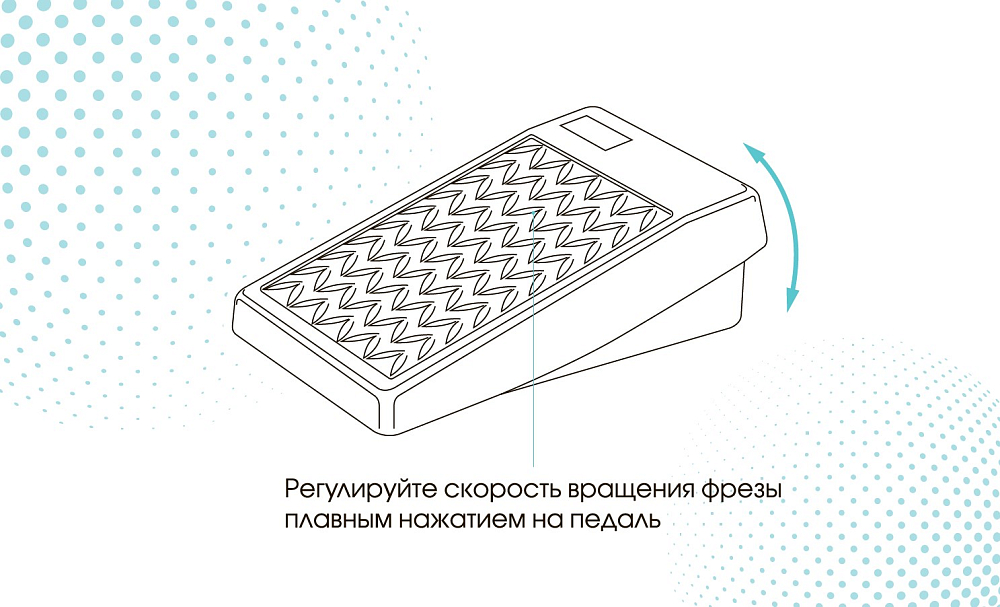- Необходимо выбирать скорость вращения фрезы в зависимости от ее типа и диаметра. Соблюдение данной рекомендации обеспечит безопасность клиента и продлит срок службы устройства!;