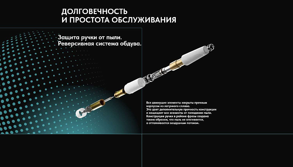 - Аппарат оснащён функцией «ПАУЗА». Для того чтобы приостановить работу наконечника достаточно нажать клавишу «М». Для возобновления работы - повторно нажать ту же клавишу;