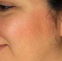 - румяна: нанести на скулы, тщательно растушевать;