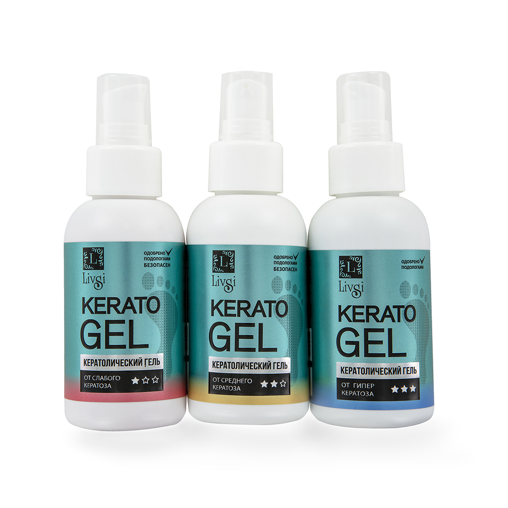 Экономичный и высокоэффективный щелочной препарат с оптимально-густой гелевой консистенцией предназначен для удаления гиперкератоза. Средство проникает в слой кератолического нароста, усиленно размягчает и разрыхляет его, разрушает и отторгает ороговевшие участки кожного покрова, способствуя его дальнейшему удалению. Продукт работает не выборочно, а оказывает действие на все участки кожи, с которыми соприкасается. Применение кератогеля в педикюре существенно увеличивает эффективность обработки проблемных зон, и облегчает по времени и усилиям работу мастера. Специалисту не требуется срезать ороговевшую кожу так как продукт разрушает отвердевшие мозоли в течение нескольких минут, не травмируя при этом живые клетки эпидермиса (старые в процессе воздействия мягко отслаиваются). На поверхности остаются только здоровые, молодые клетки мягкой, гладкой, бархатистой кожи.