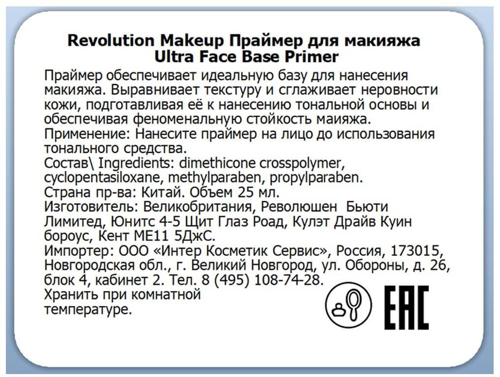 Праймер ULTRA обеспечивает идеальную базу для нанесения макияжа. Ваш невидимый "помощник" на основе силиконов поможет скрыть мелкие недостатки кожи. Также праймер увеличивает стойкость тональной основы на коже - вместо обычных 6 часов она держится часа на 3 дольше.