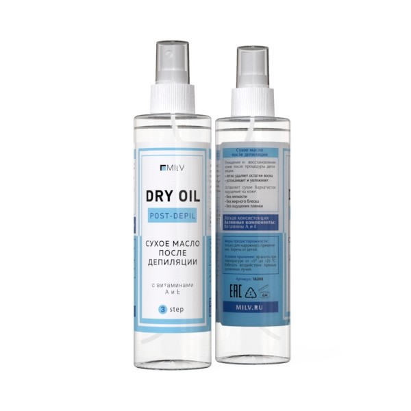 Сухое масло после депиляции бренда Milv в объеме 250 мл.