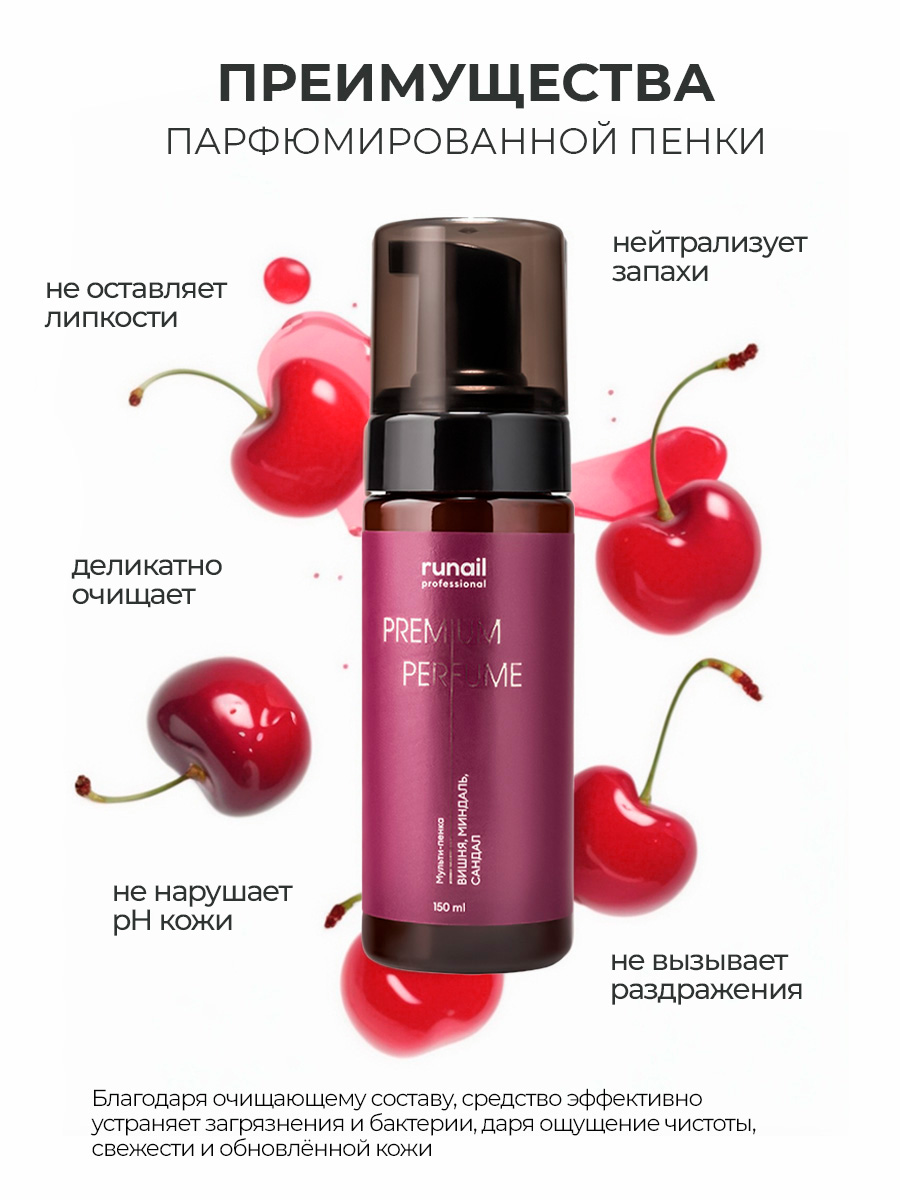 КОМПЛЕКТАЦИЯ (СОСТАВ НАБОРА): Runail, очищающая мульти-пенка для маникюра и педикюра (вишня, миндаль, сандал), 150 мл