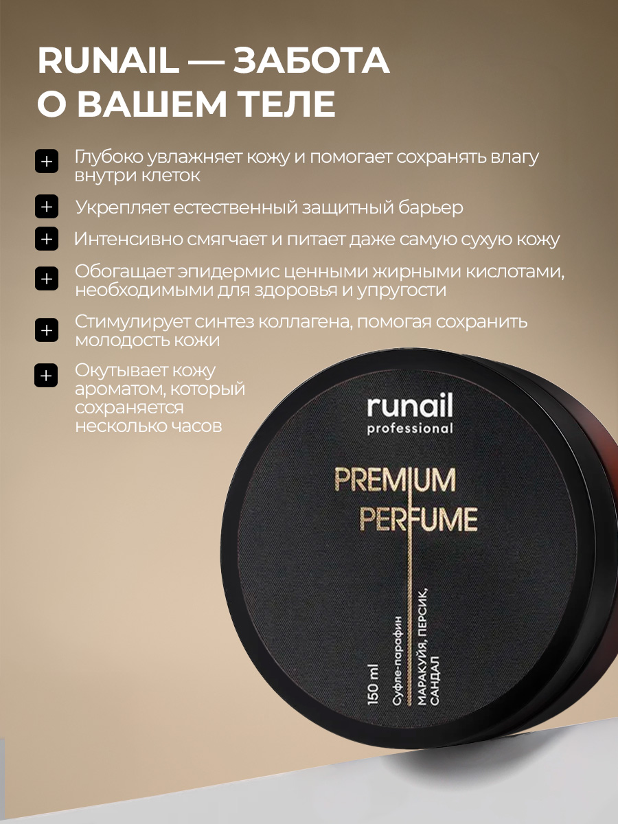 Runail, парфюмированный суфле-парафин для рук и тела (маракуйя, персик, сандал), 150 мл