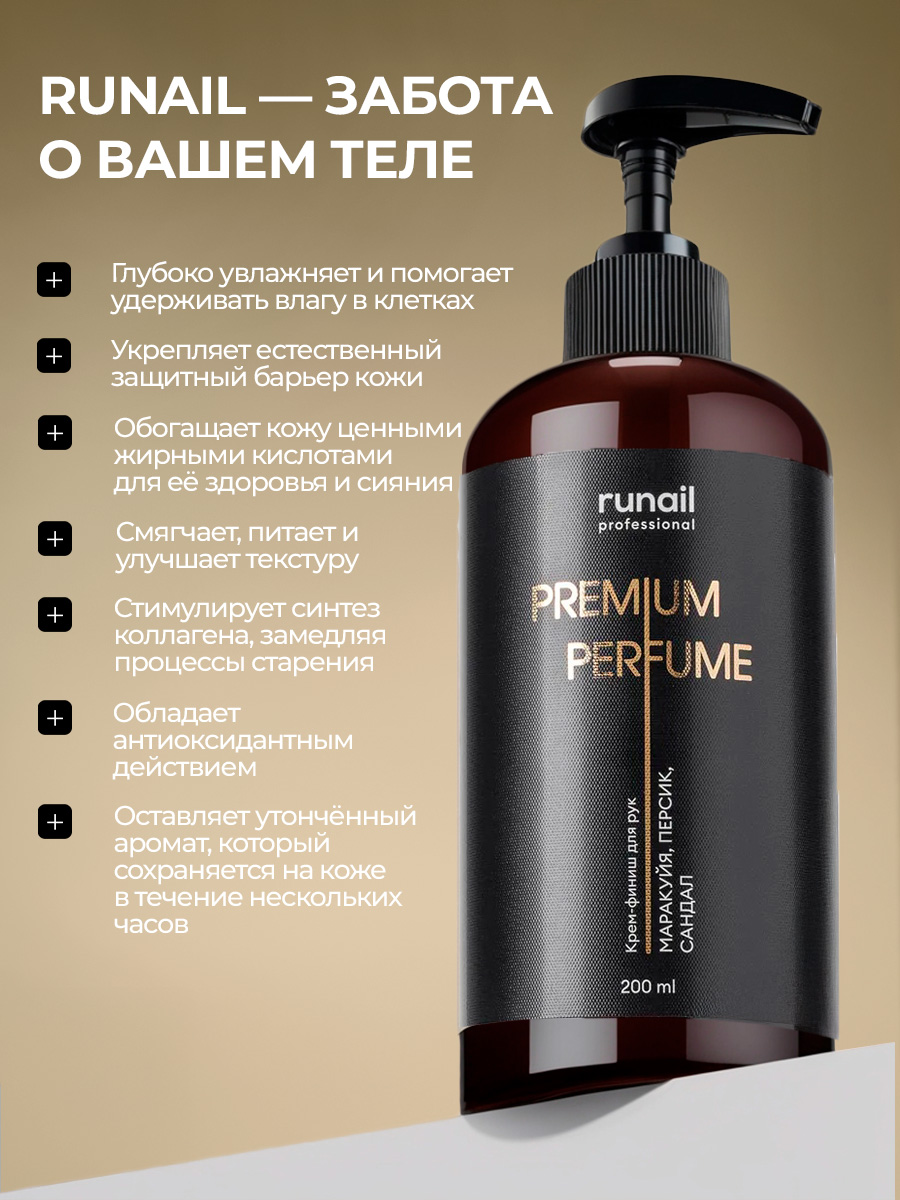 Runail, парфюмированный крем-финиш для рук с мочевиной 10% (маракуйя, персик, сандал), 200 мл