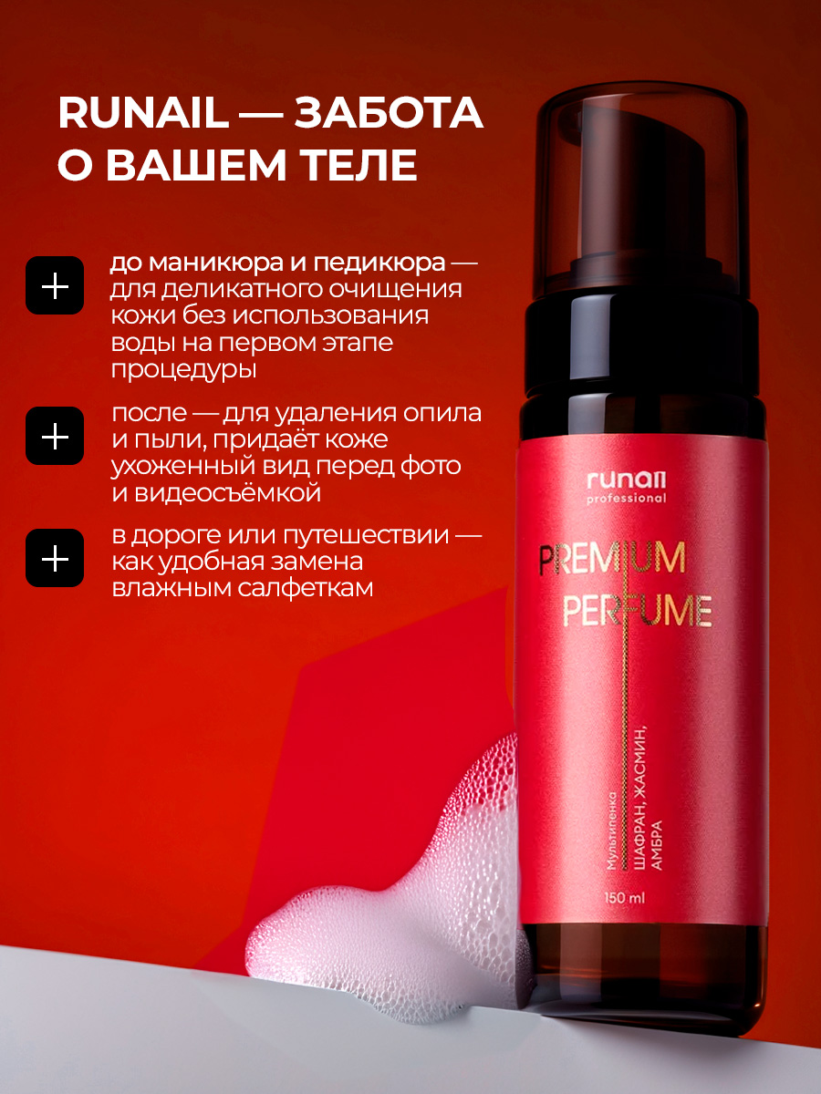 Средство предназначено для использования перед и после процедуры маникюра/педикюра. Обладает деликатным антибактериальным эффектом, нейтрализует неприятные запахи, увлажняет кожу, делая её мягкой и гладкой. Благодаря своей лёгкой текстуре, пена быстро впитывается, не оставляя липкости. Пенка подходит для всех типов кожи и может использоваться как в салонах красоты, так и дома.