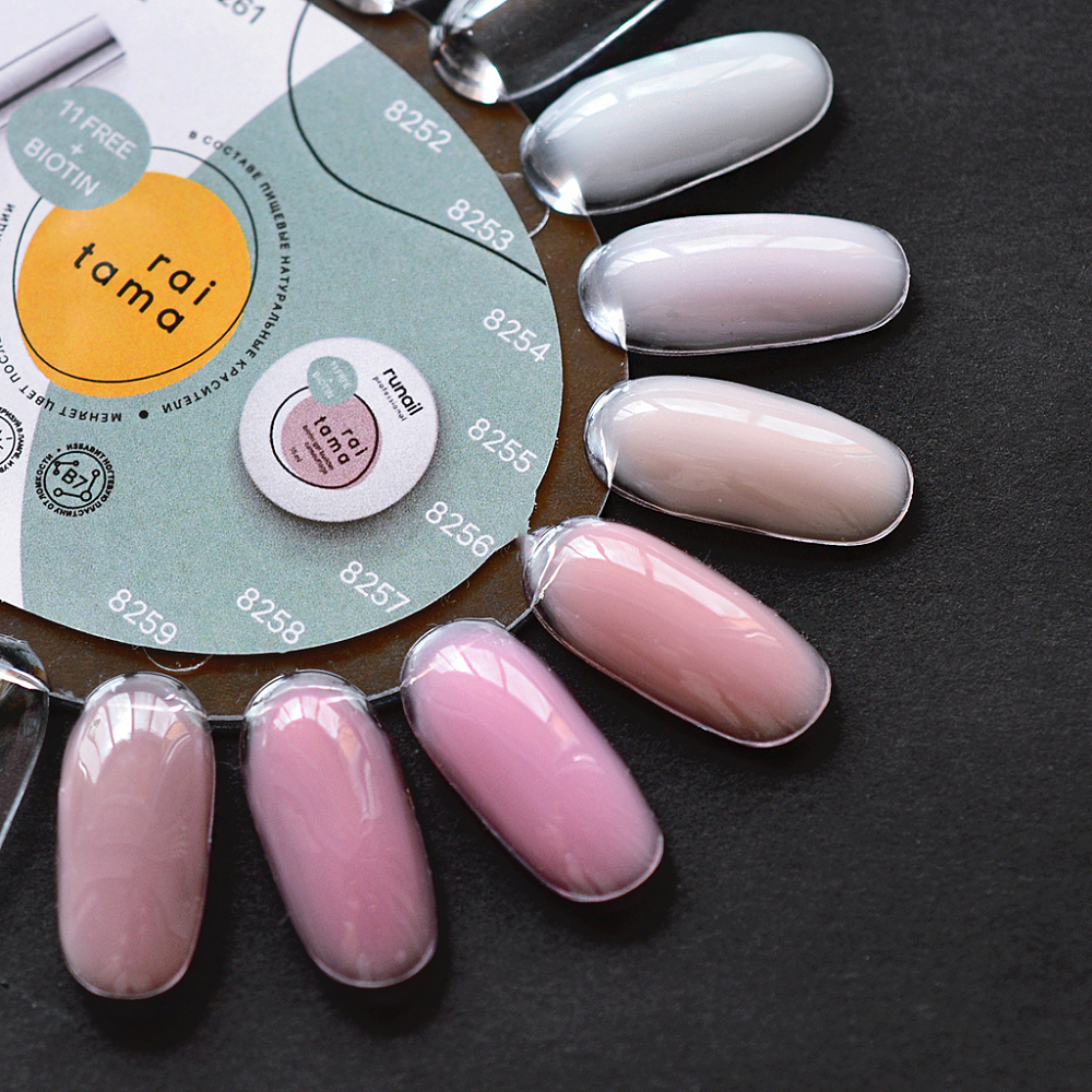 В составе камуфлирующих гелей raitama biotin gel collection – натуральные пищевые пигменты из группы каротиноидов, которые поглощают свободные радикалы и частично распадаются в процессе полимеризации под UV-излучением.