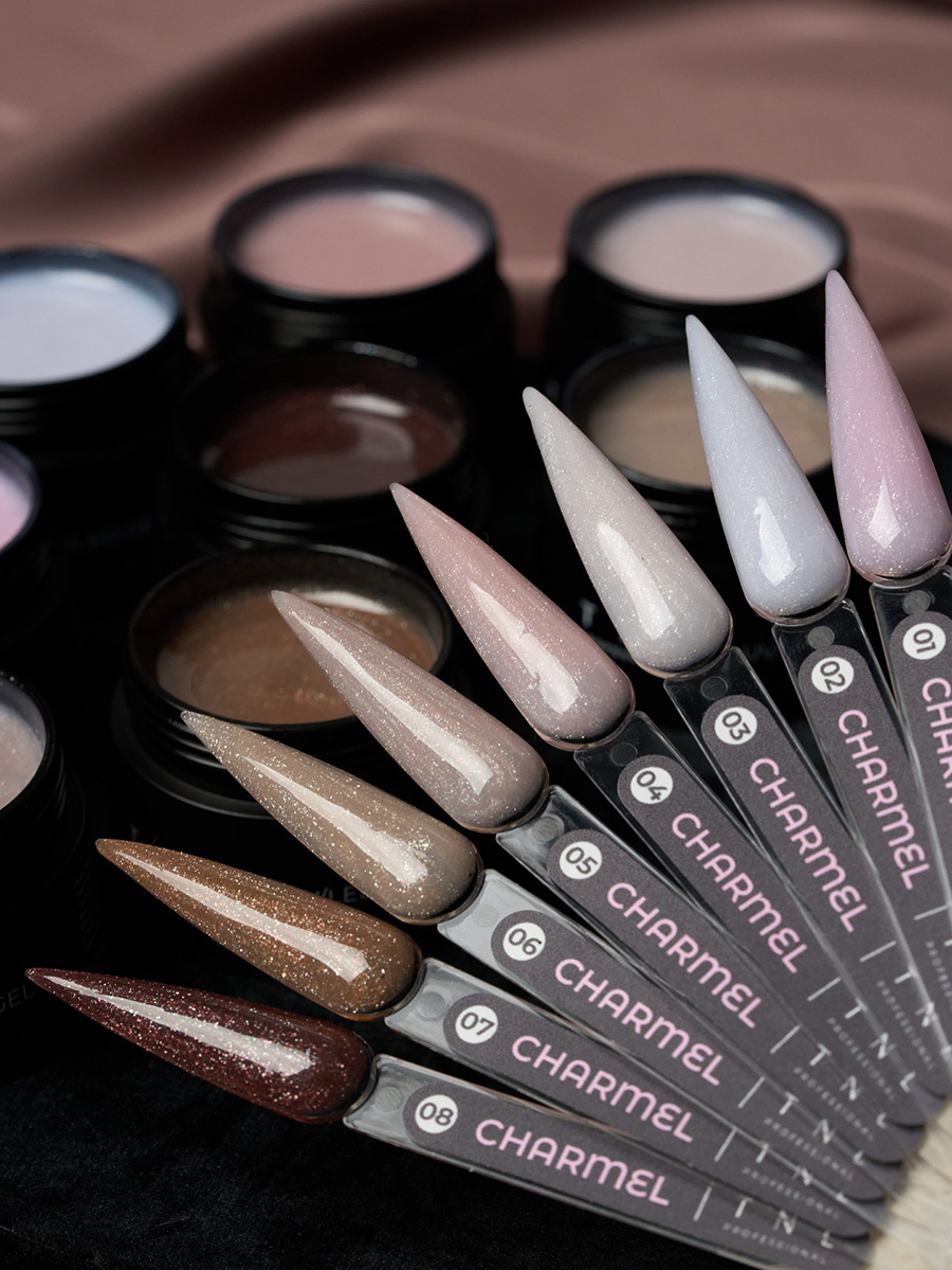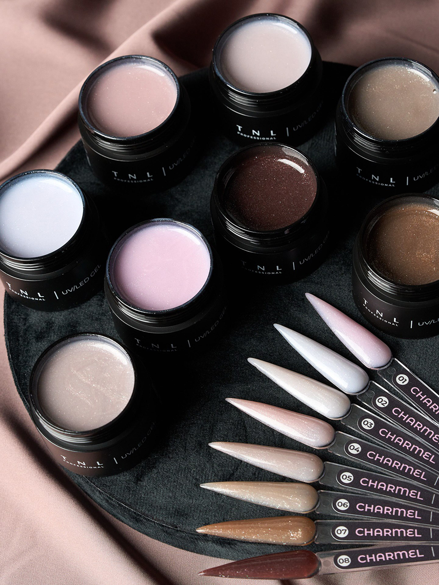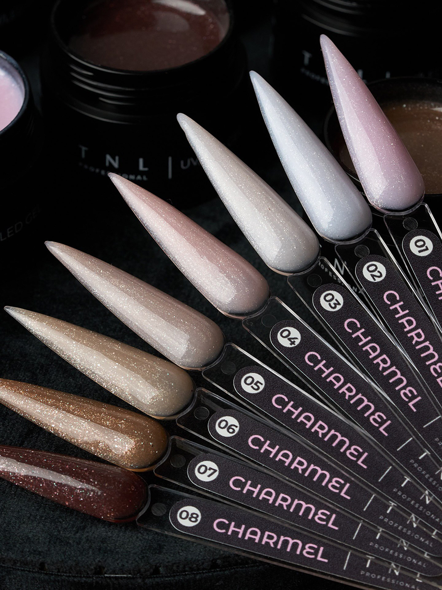 Жесткий гель для наращивания с шиммером "Charmel" бренда TNL в объеме 15 мл.