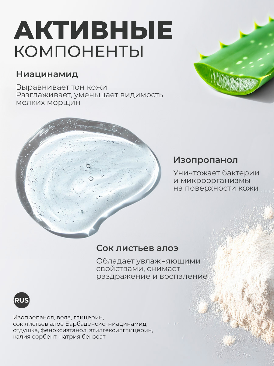 Средство обладает антисептическим и бактерицидным действием, содержит натуральные увлажняющие компоненты и мягкий pH. В составе - ниацинамид, который увлажняет кожу и разглаживает мелкие морщинки, экстракт алоэ барбаденсис, смягчающий и омолаживающий кожу, а также изопропанол, уничтожающий бактерии и микроорганизмы. Тоник убирает покраснения, выравнивает тон кожи и придает ей свежий, здоровый вид. Он не содержит масел и вредных веществ, что делает его безопасным для ежедневного применения.