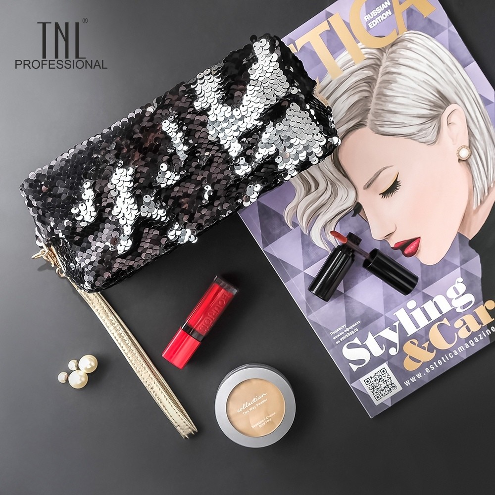 Косметичка с пайетками "Русалка" прямоугольная (серебряный/черный) бренда Тнл.