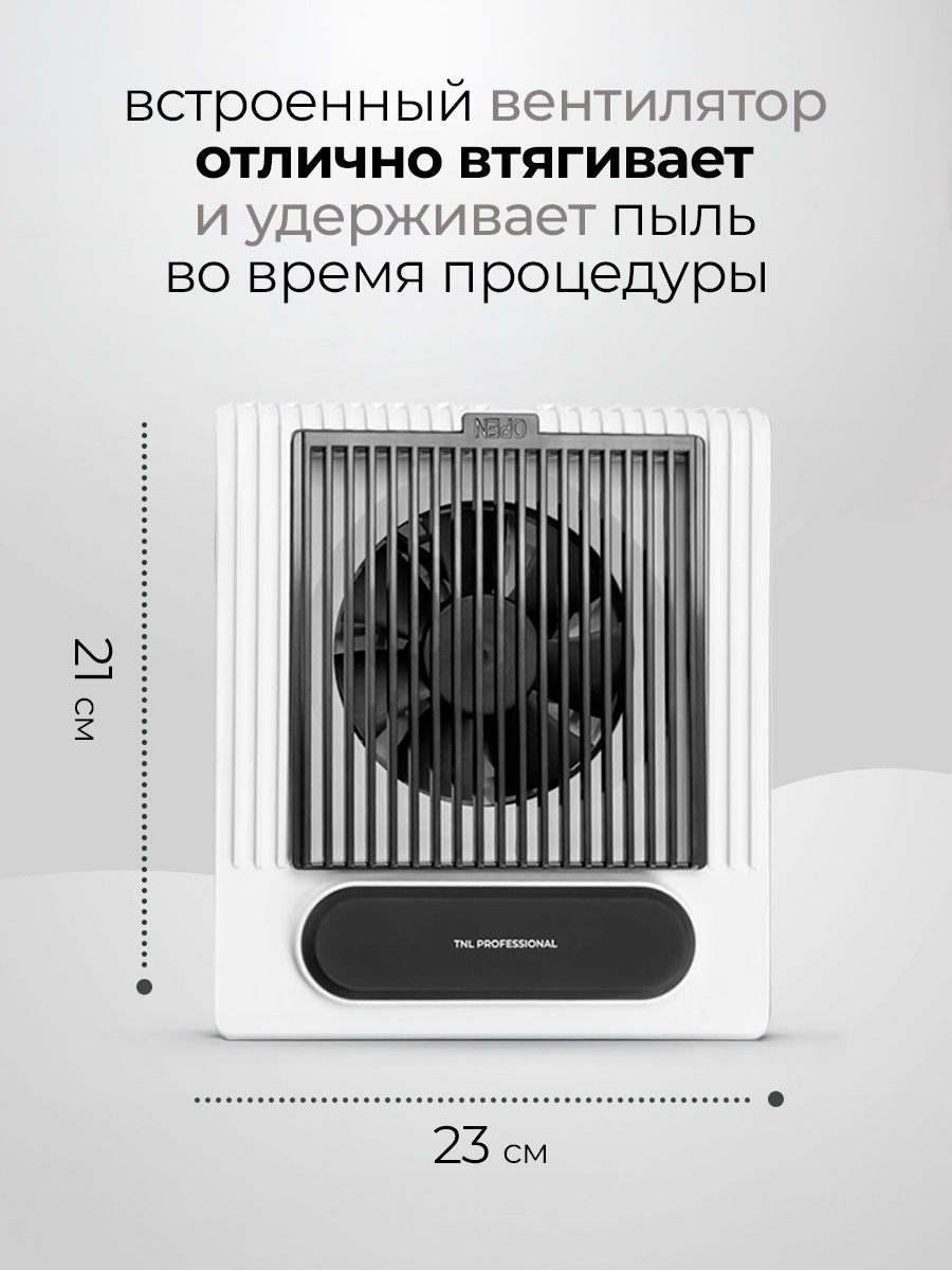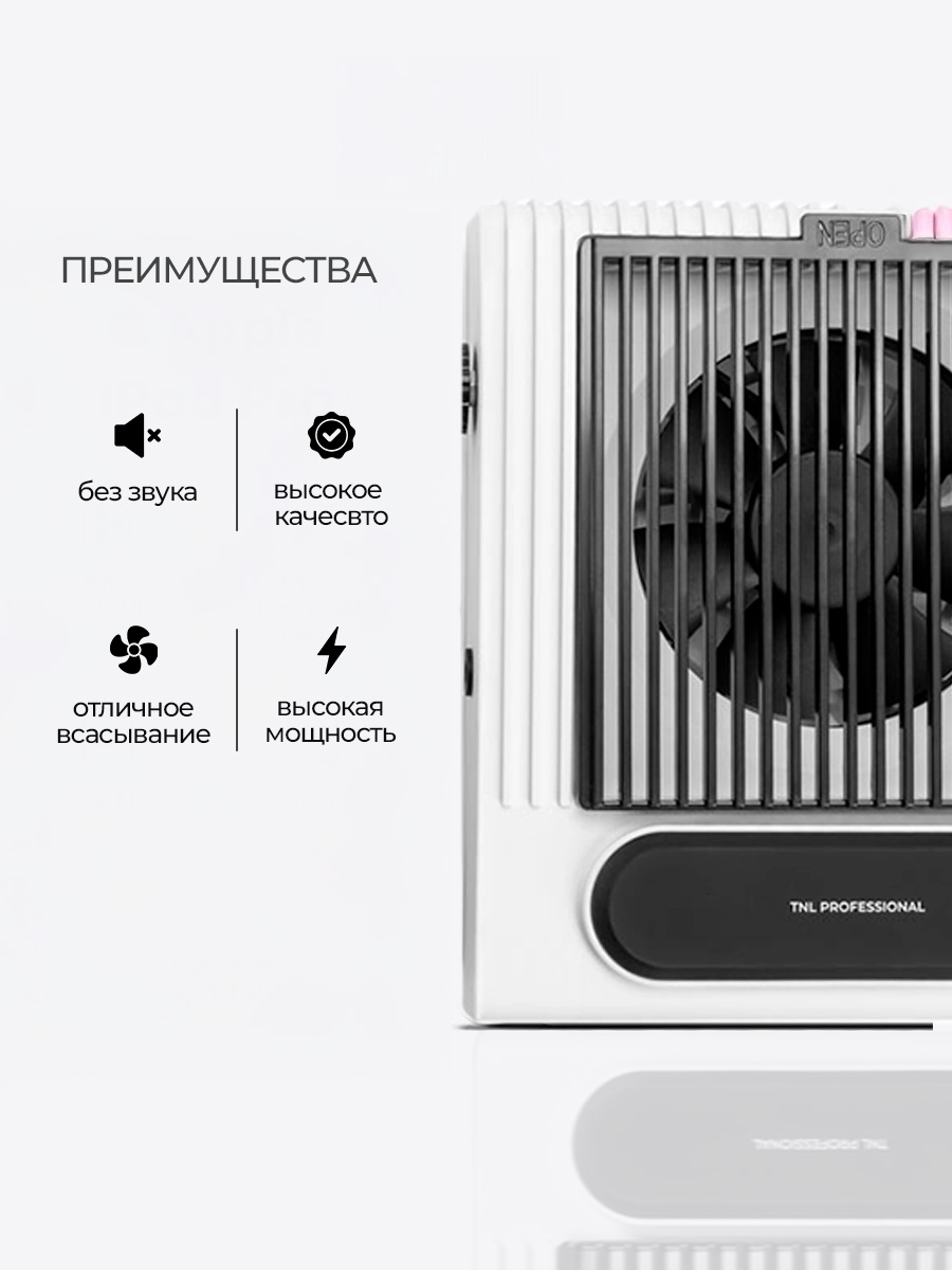Устройство моментально втягивает пыль во время процедуры маникюра, создавая комфортные условия для работы мастера.