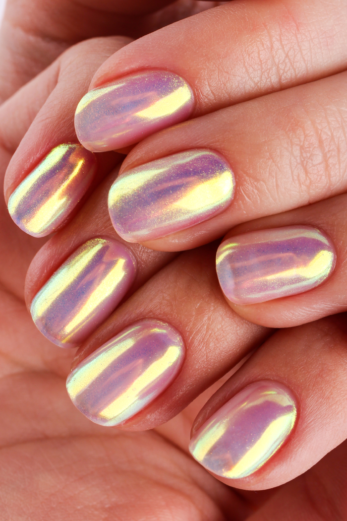 • Используй жидкую втирку на всей поверхности ногтевой пластины или в качестве акцента с применением трафаретов.