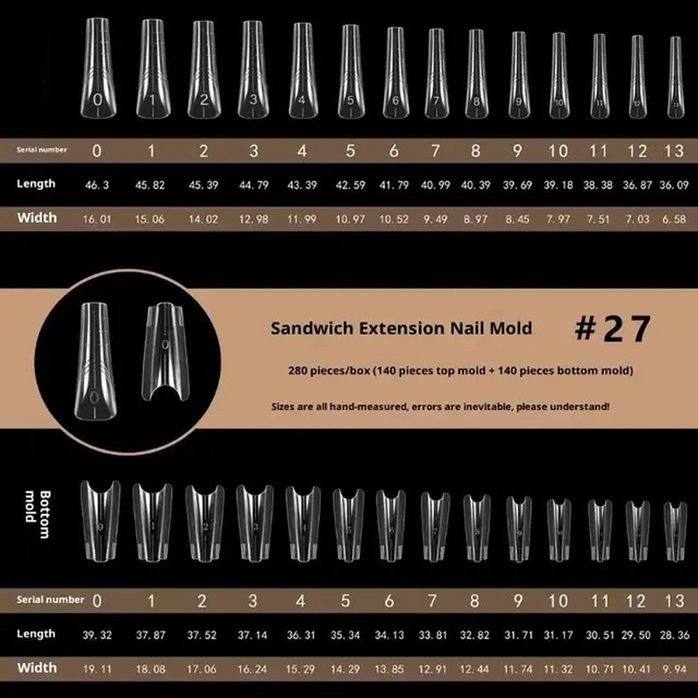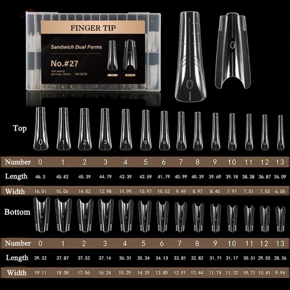 Форма состоит из верхней и нижней частей, которые в процессе моделирования смыкаются между собой, формируя правильную архитектуру ногтя.
