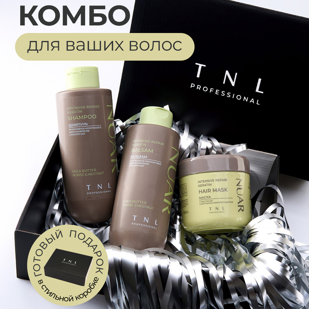 Палитра ухода за волосами "NUAR" от TNLЛинейка с защитой цвета включает средства, гарантирующие длительную яркость цвета, придающие глянцевый блеск, восполняющие потерю влаги и восполняющие гидробаланс в полотне волос. Коллекция для глубокого восстановления волос состоит из средств, реконструирующих структуру локонов, полирующих и запечатывающих кутикулу, устраняющих ломкость и сечение волоса, защищающих от воздействия термоприборов. Серия для регенерации и интенсивного увлажнения предназначена для мгновенного насыщения прядей необходимыми витаминами, микроэлементами и влагой, повышения эластичности, плотности и объема волос, придания волосам глянцевого блеска и шелковистости.