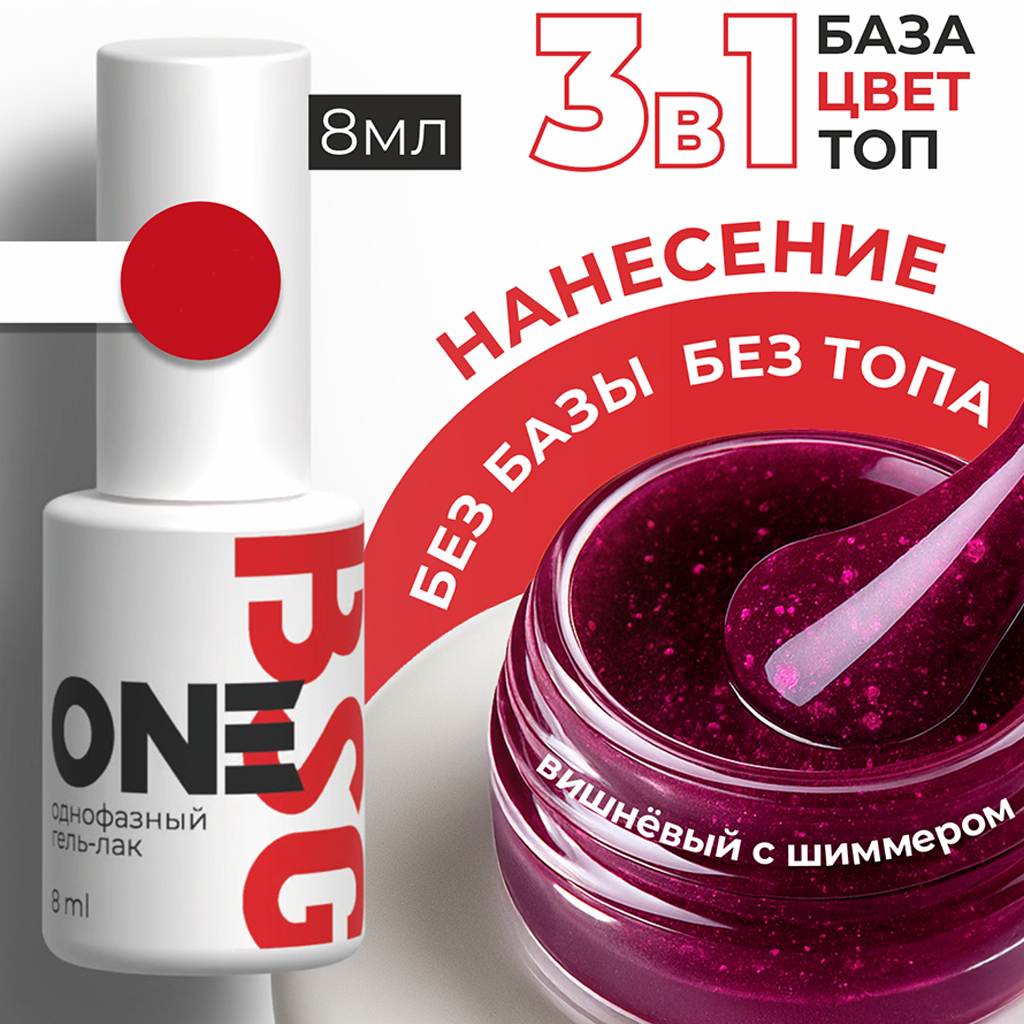 Коллекция однофазных гель-лаков "ONE" от BSGИнновационные гель-лаки объединяют в себе базу, цвет и топ. Благодаря высокой пигментации и идеальной консистенции продукт легко наносится даже новичками, прямо на подготовленную ногтевую пластину. Покрытия обеспечивают плотный равномерный цвет, эластичность и эффект салонного блеска без использования дополнительных материалов (базы и топа). Отлично самовыравниваются, не растекаются, сохраняют аккуратный вид даже при тонком нанесении. Подходят для натуральных ногтей любой длины, гарантируют комфортную носку без сколов и идеальную сценку с ногтевой пластиной.