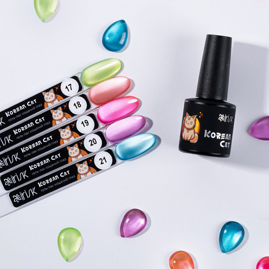 Коллекция магнитных гель-лаков "Korean Cat" от Irisk. Обновление палитры оттенковУникальные гель-лаки с магнитными частичками в составе, создающими эффект хрустального "кошачьего глаза". Трендовый дизайн придаст красоту вашим ручкам, поскольку сочетаются с любыми цветными покрытиями и вписывается в любой гардероб. Покрытия обладают невероятно ярким и зеркальным бликом благодаря ультрамелкому помолу частиц, быстро реагируют на любые магниты. Могут наносится в 1 слой для нежного эффекта, или в 2 слоя - для более насыщенного и яркого. Гель-лаки экономичны в расходе, безболезненно и быстро просыхают в лапе, сохраняют эстетичный внешний вид до 2-4 недель.